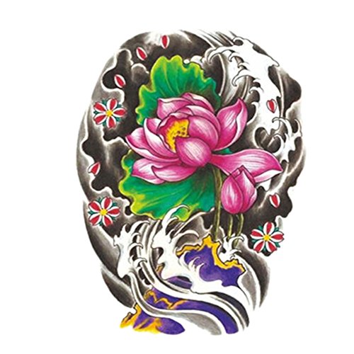 -. Title : [Beautiful Lotus] Coloured Body Tattoo Sticker Waterproof Fake Tattoo(8.66'')