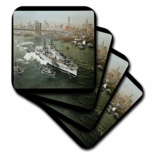 3dRose cst_16088_1 World War II American Battleship on The Hudson River New York City-Soft Coasters, Set of 4