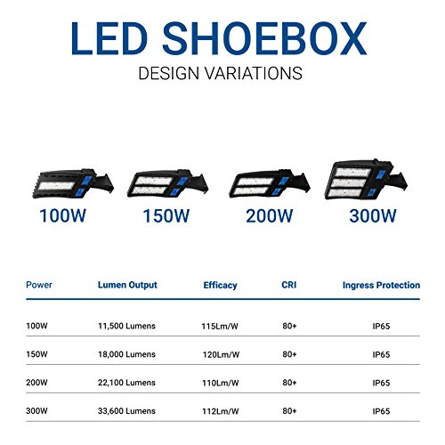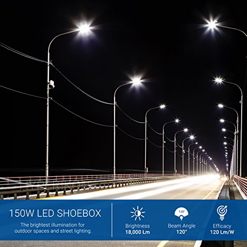 Hyperikon LED Shoebox Pole Light, 150W (450W HID/HPS Replacement), 5700K, 18,000 lumen, Direct Wiring AC 100-277V, Street Parking Lot Lights, Free Photocell Included, IP65, UL & DLC