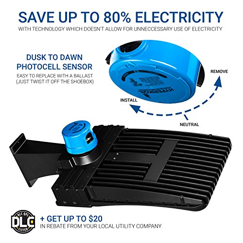 - ✔ PHOTOCELL INCLUDED - Free photocell is included for no-hassle dusk to dawn feature and maximum longevity. Hyperikon's LED parking lot light is rated for 45,000 hours of use, saving you money on relamping and installation fees over the life of the fixture.