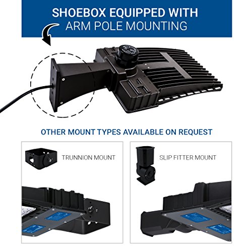 - ✔ ARM MOUNT INCLUDED - Hyperikon Shoebox LEDs have a built-in pole mounting arm that can also be configured with a FREE Trunnion mount or Slip Fitter mount available upon request.