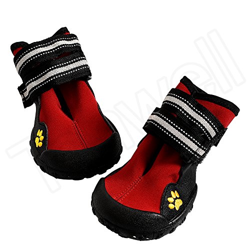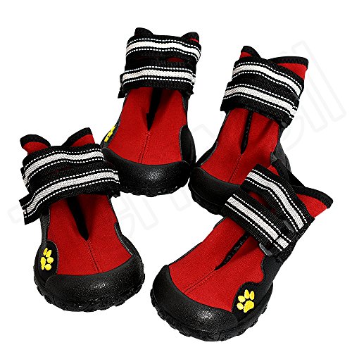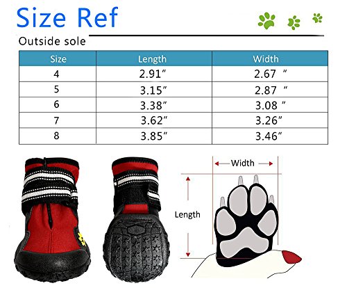 Studio : My shoes Publisher : My shoes Binding : Misc. Product Description Adjustable velcro straps keep dog snug and secure. Deluxe anti-slip sole. Color:red Material:waterproof sturdy soles,leather sole,fabric Size:4.5,6,7,8 are as following: Size 4: width:6.8cm/2.677(inch);length:7.4cm/2.913(inch)