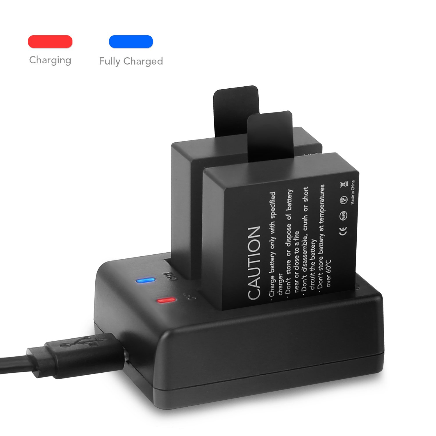 Charging is done when the instruction light turns red, charging is completed when the instruction light turns blue.