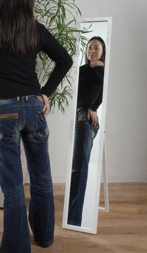 Mirror finish stylish stand mirror white width 25cm x height 150cm shatterproof
