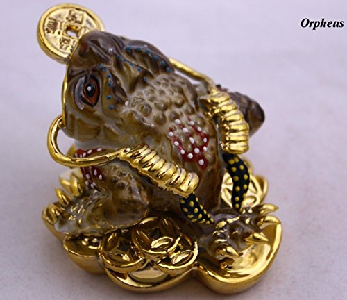Three Legged Wealth Toad - Money Frog Feng Shui Chinese Porcelain,figurine 2048. (Brown)