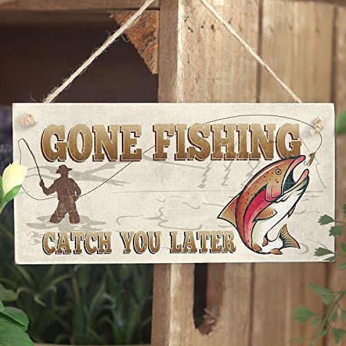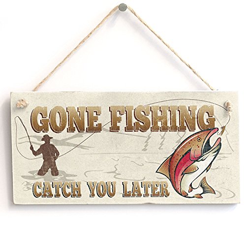 Meijiafei 'Gone Fishing Catch You Later' Gift For Man Dad - Door Sign /Plaque 10"x5"