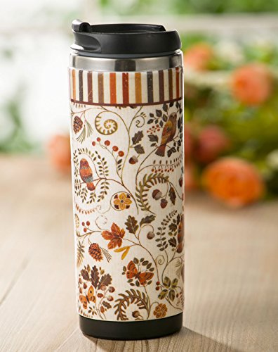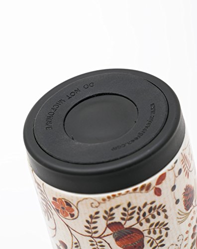 Take your favorite drink on the go with this distinct travel cup. Keep your hot drinks warm and your cold drinks cold for 4 hours or more with the double-wall insulated design. The design features a stainless steel interior and a ceramic exterior with a licensed artistic print. The patented plastic lid design fits snuggly onto the cup with an airtight seal using a food-grade silicone ring. The pop-top is great for sipping or perfectly fits a straw for ease during travel. The bottom of this cup features a silicone piece to prevent sliding, making this the perfect mug for desktops or tables as well. The mug should be washed before first use and should stay clean and dry when in storage. Avoid long-term storage of acidic foods or drinks. This mug holds up to 12 ounces and is dishwasher safe.Feature