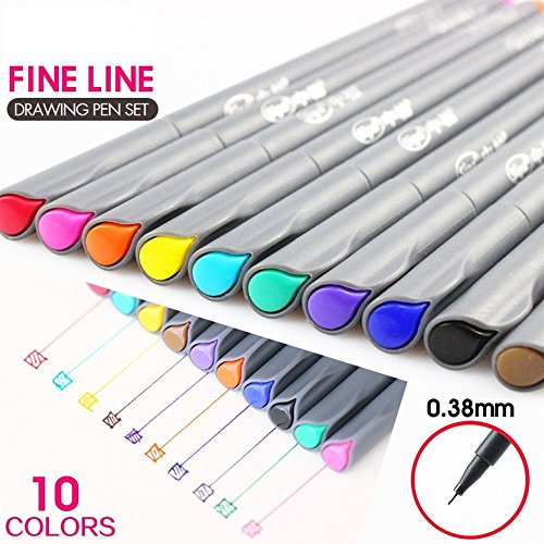 - Vibrant Colors --- 10 differents vibrant colors, Size in 0.38mm Fine Porous-Point Pens, perfect for drawing lines & details and outlining with a smooth application, such as for painting, writing, sketching, coloring, marking, signing, manga, animation, graphic, design, illustration, included artists fine-ink drawings and coloring small intricate patterns.