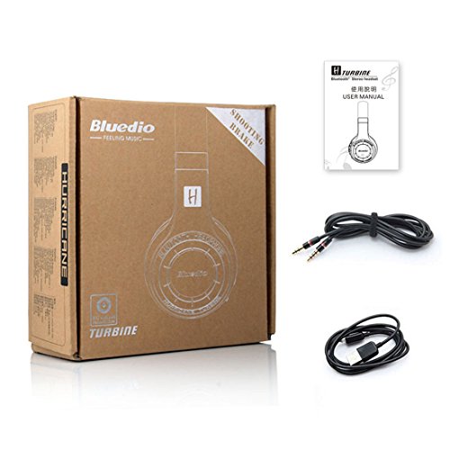 Feature : Iconic powerful bass resonance of Bluedio: Unexpected 57mm ultra-large dynamic drivers, turbine style housing, with iconic Bluedio surging low-frequency shock, let you feel the bass resonate deep in the chest, enjoying the best sound quality. / Ultra-long operation and carefree calling from Bluetooth 4.1: Ultra-long 40 hours music, 45 hours talk and 1625 hours (around 67 days) standby time, the same battery, decrease up to 40% power consumption compared to Bluetooth 4.0. / Customized function: Audio Sharing allows you to connect to another H(Shooting Brake) headphone via audio cable, share music feast with your friends instantly(recommended to use headphones with impedance of 32 or higher) / Comfortable wearing: Custom fit supra-aural soft earmuffs, artificial protein leather of earmuffs simulated to human skin texture, ensure long lasting comfort in various rugged circumstances / Convenience: Just a plug with audio cable(buy separately), then listen to your favorite tracks without using any battery, no matter how long is your playlist. H-turbine also incorporate 4 languages voice prompt(Chinese, English, French, Spanish)