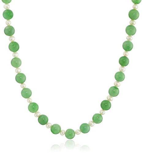 Necklace featuring polished jade beads interspersed with round freshwater cultured pearls