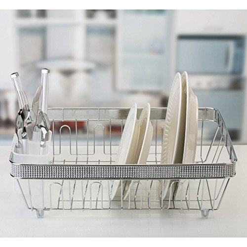 Jennifer Collection Dish Rack with Cup and Tray, Chrome Pave Diamond Design