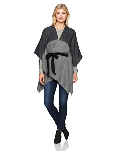 (Collection XIIX)/Accessories/Scarves/DIRECT FROM USA/Collection Xiix Women's Marled Color Block Belted Ruana, black, One Size