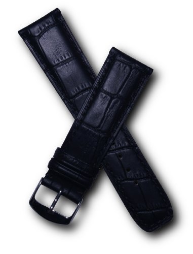 -. Title : 22mm Black Alligator-style Genuine Leather Watchband with Black Stitching to fit Baume & Mercier Classima