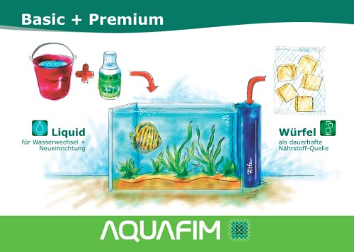 Gesunde Aquarien. Wie von selbst. Gesunde Pflanzen sind die Basis für die Vitalität aller Wasserbewohner. Sie benötigen für Ihre Entfaltung Nährstoffe wie die Fische das Futter. Die Aquafim Nährstoff-Würfel geben gleichmäßig die optimale Menge an Dünger ins Wasser ab. Dosier-Würfel in den Filter oder an anderer, gut durchströmter Stelle einsetzen. So werden die Nährstoffe mit diesem Test-Set 1 Monat lang kontinuierlich an das Wasser abgegeben. Mit den Basic Continue- oder Basic Set- Produkten erreichen Sie eine Abgabezeit von 3 Monaten. Genießen Sie mit den Aquafim Nährstoff-Würfeln ein bisher nicht gekanntes Maß an Präzision und Komfort. Bei Wasserwechsel oder Neueinrichtung Ihres Aquariums wird im Frischwasser mit dem in diesem Set enthaltenen Liquid das richtige Nährstoff-Niveau eingestellt. Dosieren Sie 10 ml je Liter Frischwasser. Danach halten die Nährstoff-Würfel die Nährstoffe auf konstantem Niveau Inhalt: 3 x 100 L Netzbeutel & 30 ml Basic Liquid Reichweite 300 L Frischwasser