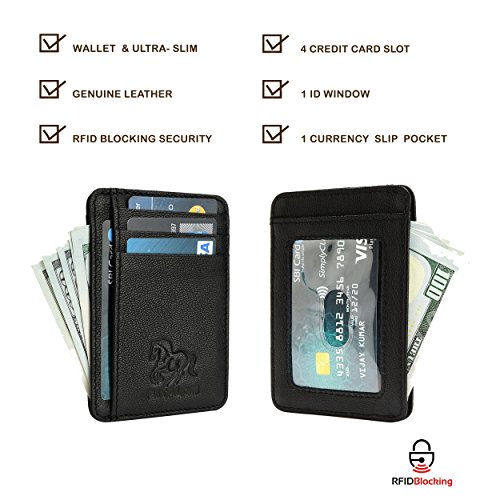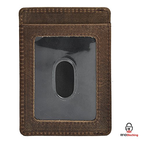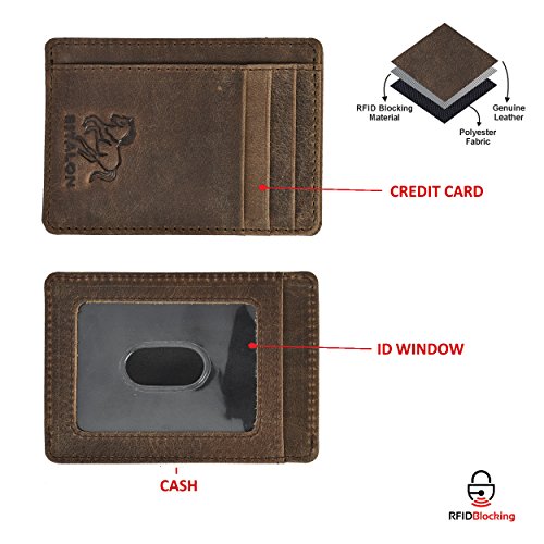 -. Feature : 100% Genuine leather credit card is specially designed to carry currency note,Ids & credit cards, / RFID BLOCKING TESTED & APPROVED BY INDEPENDENT LAB TESTS. Our wallets have been tested for 13.56 MHz Frequency in which our credit cards, debit cards, driver license and ID cards operate. PLEASE BE NOTED THAT the signal of some ID badge, access cards and hotel room cards which operates in 125 KHz, can not be blocked by this wallet. / FUNCTIONALITY: 1 Note Compartment, 4 credit card slots & 1 ID compartment / ENHANCES PERSONAL SECURITY: We leverage top RFID technology to block RFID signals used to electronically scan your wallet as someone passes by unnoticed. This keeps your vital information in driver license, debit cards and credit cards from being stolen. / 1 YEAR WARRANTY, our warranty covers any defect caused during product production and delivery. We can offer you full refund or free replacement, whichever is at your most convenience.