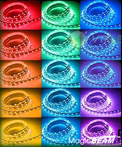 Magic BEAM 5M 16.4 Ft WATERPROOF LED Strip Lighting Full Kit 5050 RGB 150 LED Flexible Color Changing LED Light Strips with Power Supply + 44-Key IR Remote Controller