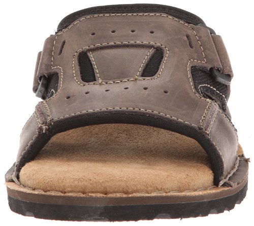 - Feature : Sporty, yet casual slide sandal with roomy comfort / Memory foam footbed / Logo embossed leather