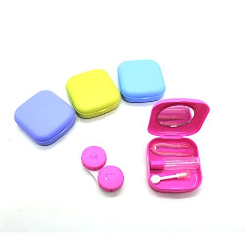 IDS Set of 4 Mini Travel Contact Lens Case Kit Holder Mirror Box, Blue, Purple, Green, Rose Red