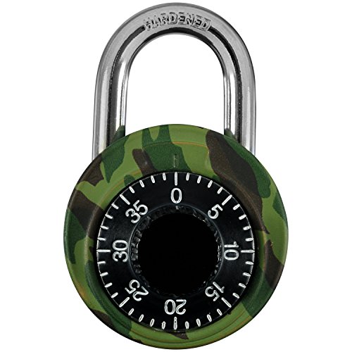 -. Feature : Lock body constructed of steel with camouflage design overlay / Hardened steel, chrome plated shackle / 40 digit combination dial / Great for lockers at school, gym or bikes / Lifetime Warranty