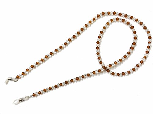 PEPPERLONELY Brand Crystal Glass Beaded Eyeglass Holder Chain Necklace - Brown/Clear