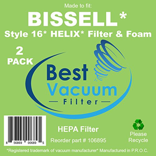 2 Pack Bissell 32R9 Style 16 Washable & Reusable Filter & Foam for CleanView Helix Series Vacuum, Compare to part # 32R9, 73K1, 69B1 Designed by Best Vacuum Filter