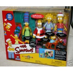 -. Binding : Toy -. Brand : The Simpsons -. EAN : 0043377991687 -. Feature : Toys 'R Us Exclusive -. IsAdultProduct : 0 -. Label : Playmates -. LegalDisclaimer : Not recommended for users under four (4) years of age! Discontinued and out-of-production with factory installed batteries. Item is subject to possible age deterioration/depletion/leakage of factory installed batteries! -. Manufacturer : Playmates -. MPN : 199168 -. PackageQuantity : 1 -. PartNumber : 199168 -. ProductGroup : Toy -. ProductTypeName : TOYS_AND_GAMES -. Publisher : Playmates -. Studio : Playmates -. Title : The Simpsons Playset Family Christmas -. UPC : 043377991687