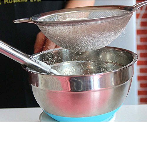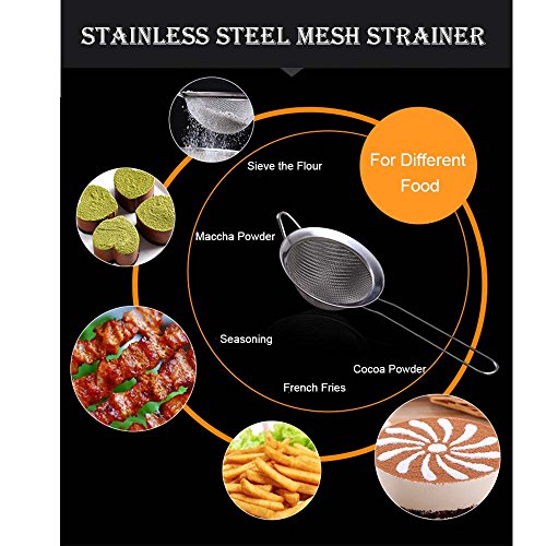 Fine Mesh Sieve: Our Fine Mesh Stainless Steel Strainers have exclusive sealed steel rims for a variety of fine food,it will not waste food because the fine mesh nets easily catch and sift, strain or drain the smallest ingredients.