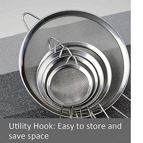 Multi-functional Application: The Set of 5 Kitchen Fine Strainers works great for sifting, straining and rinsing difference quantities of wet or dry ingredients. Rinse uncooked vegetables or drain cooked vegetables. Ideal for straining and draining pastas. Rinse and clean vegetables, fruits, grains, beans, rices.