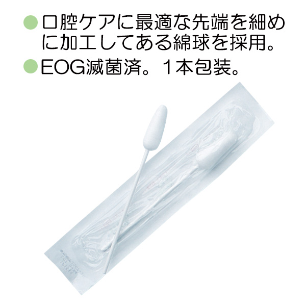 ●口腔ケアに最適な先端を細めに加工してある綿球を採用。