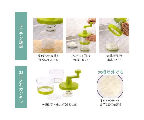 ハンドルを回すだけで手軽に大根がおろせます。