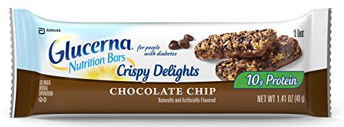 -. Binding : Health and Beauty -. Brand : Glucerna -. EAN : 0070074620749 -. Feature : Helps manage hunger as part of your diabetes weight loss plan / Has CARBSTEADY, a blend of slowly digestible carbs to help minimize blood glucose response / #1 doctor and nutritionist recommended nutritional brand for people with diabetes / 10 grams of protein to help manage hunger / Good source of fiber and an excellent source of Vitamins C and E -. IsAdultProduct : 0 -. Label : Glucerna -. Manufacturer : Glucerna -. Model : 62074 -. MPN : 62074 -. NumberOfItems : 4 -. PackageQuantity : 4 -. PartNumber : 62074 -. ProductGroup : Health and Beauty -. ProductTypeName : HEALTH_PERSONAL_CARE -. PublicationDate : 2011-08-31 -. Publisher : Glucerna -. ReleaseDate : 2015-07-16 -. Studio : Glucerna -. Title : Glucerna Crispy Delights Nutrition Bars, Chocolate Chip, 4 Count -. UPC : 070074620763