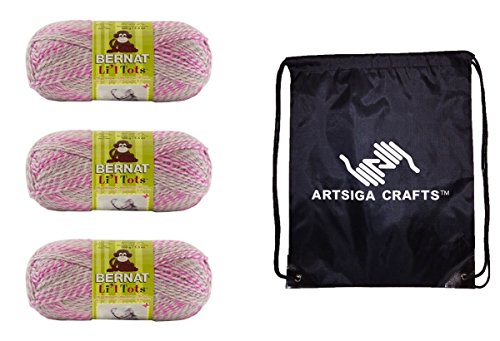 - Bundle includes 3-Pack Bernat Li'l Tots Yarn Cool Pink 161142-42418 with 1 Artsiga Crafts Project Bag