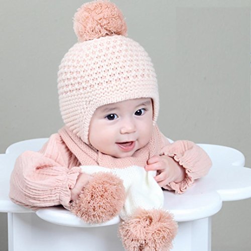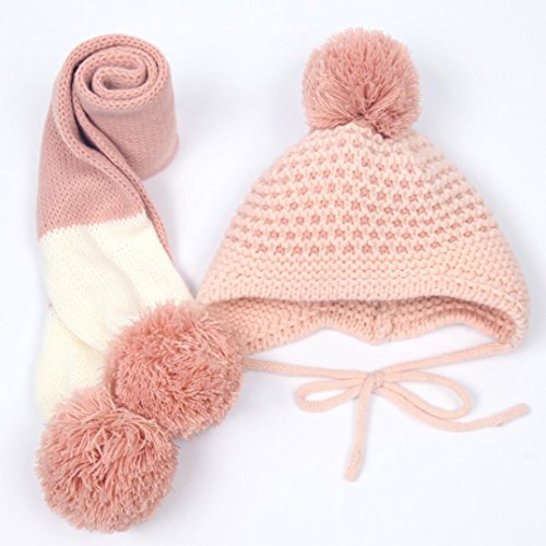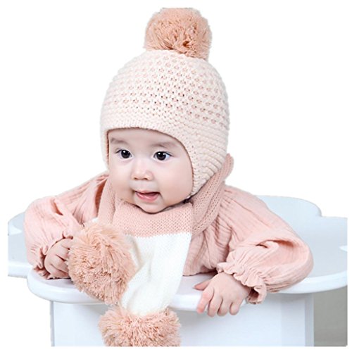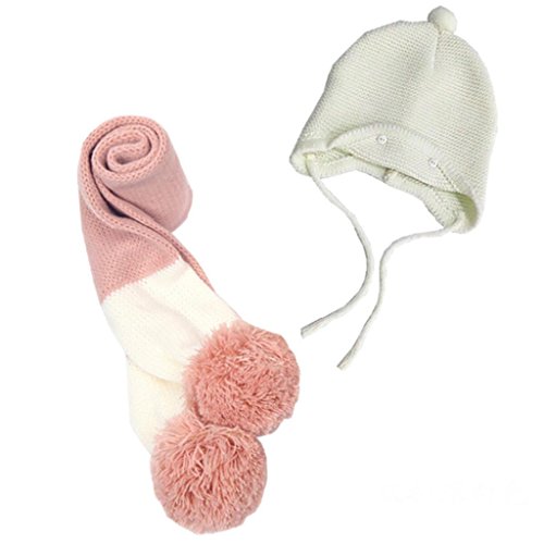 Leewa@ Newborn Baby Boy Girl Winter Knitted Beanie Hat+Scarf 2 Pieces Set for 5-12 Months (Pink)