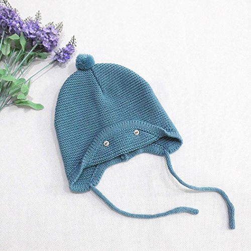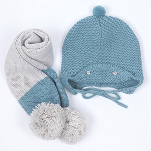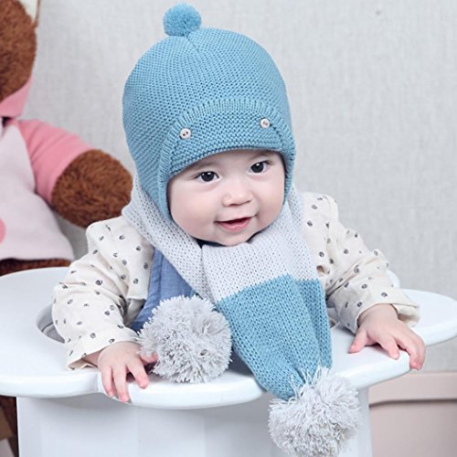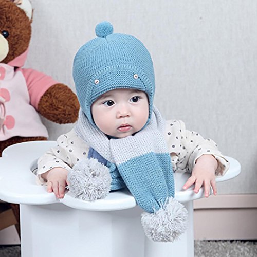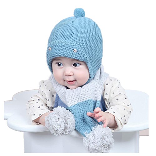 Leewa@ Newborn Baby Boy Girl Winter Knitted Beanie Hat+Scarf 2 Pieces Set for 5-12 Months (Blue)