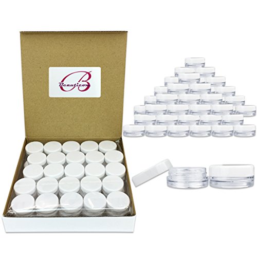 (Quantity: 50 Pcs) Beauticom 3G/3ML High Quality Clear Plastic Cosmetic Container Jars with White Lids