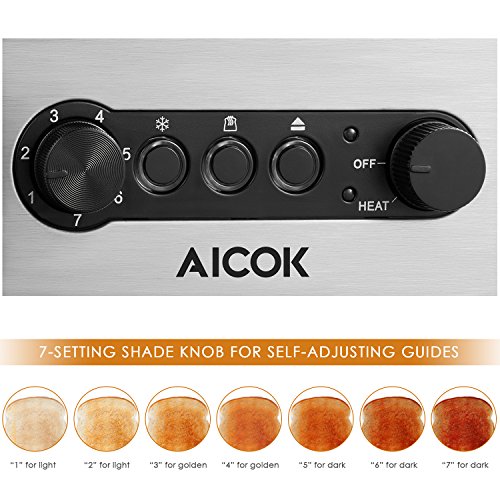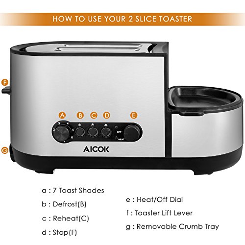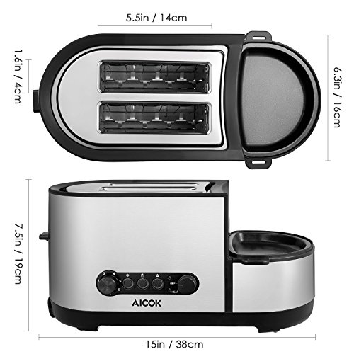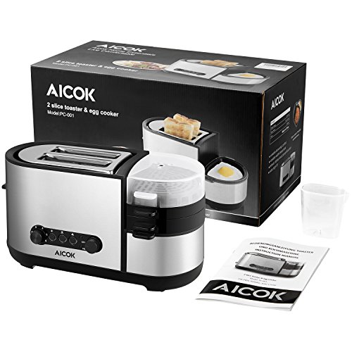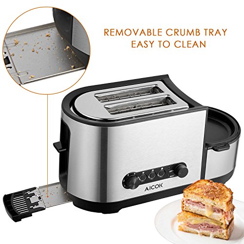 Aicok Toaster Multifunktionell, Set, Eierkocher, 2-Scheiben, Spiegelei, 7 Rostgradstufen, 7-in-1 Toaster, Langschlitz, Sandwich Maker, Panini Grill, Zubehor, zb Bagel, Kase, XL g