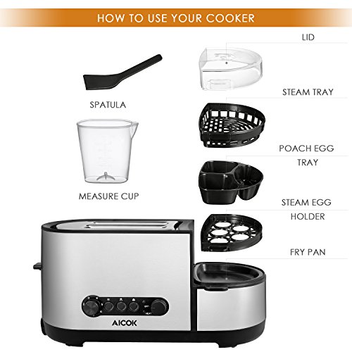 SO SCHNELL GAB ES FRUHSTUCK NOCH NIE: In nur 4 Minuten gleichzeitige Zubereitung von Toast & Eiern, sehr zeitsparen; Alles, was Sie tun mussen, ist einen Knopf drucken und die Eier beginnen zu kochen, wahrend das Brot beginnt gerostet zu werden; ideal fur Kinder & Familie.