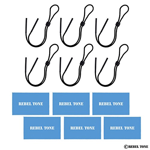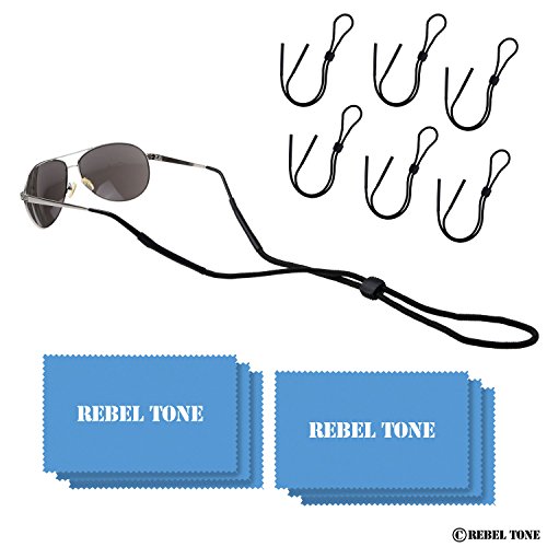 Rebel Tone Sunglass Straps and Cleaning Cloths - 6+6 Pack - Adjustable Retainer Cord - Universal Fit Neck Chains / Head Straps - Safe and Secure for Regular Glasses and Sunglasses - Black Rope