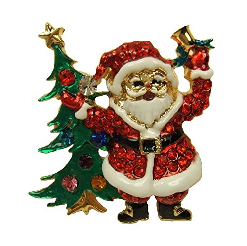 -. Title : Bejeweled Christmas Santa Waving Christmas Tree Pin Brooch 1241