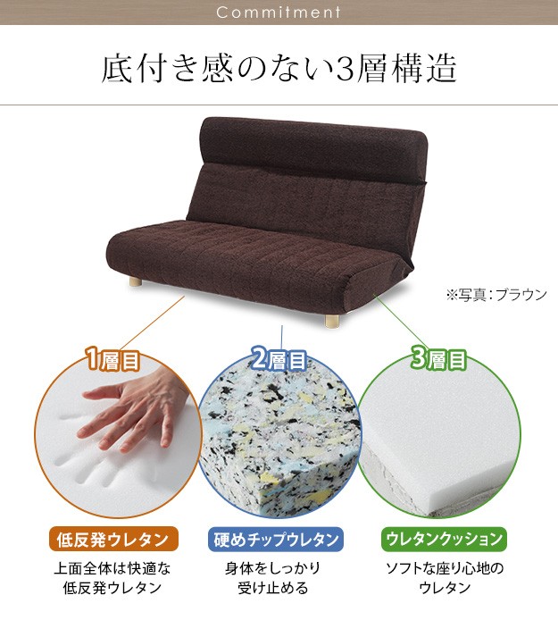 ●ローソファー フロアソファー カウチソファー 二人掛け こたつ 一人暮らし クッション付 ファブリック 低反発 国産 日本製 座椅子 コンパクト リクライニング 脚付き