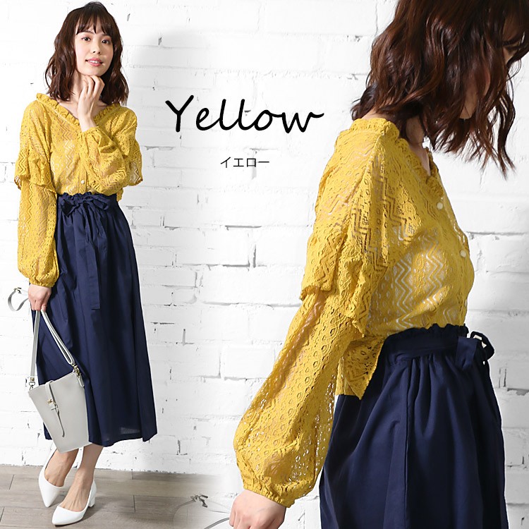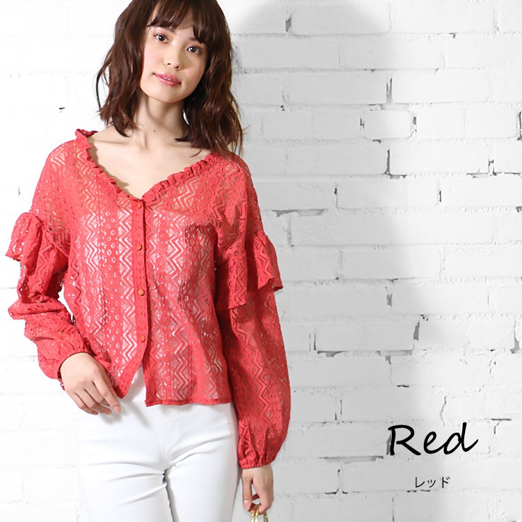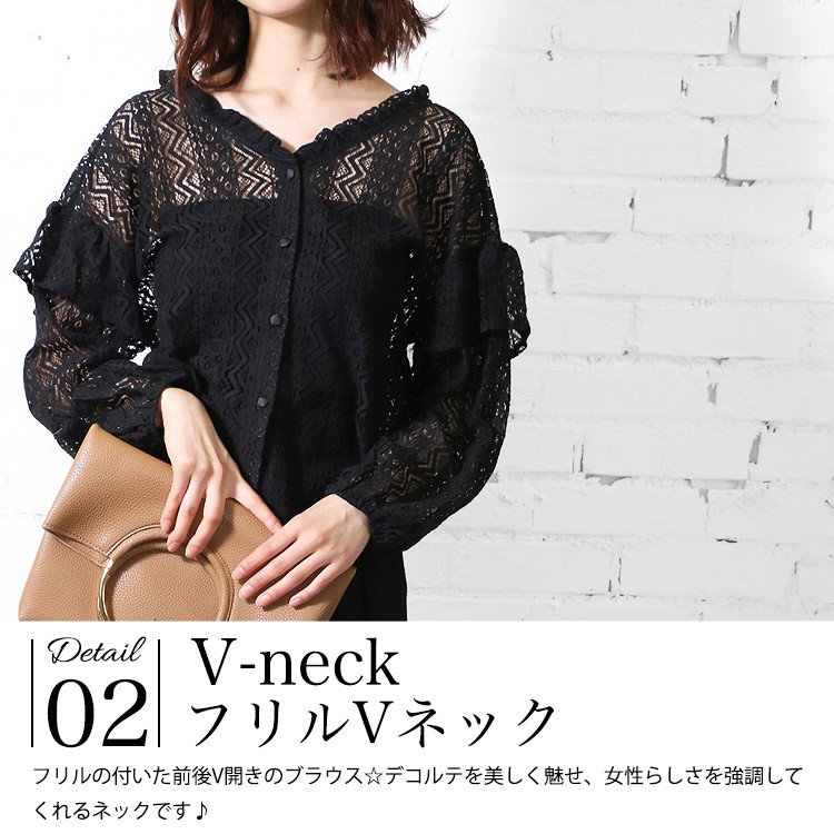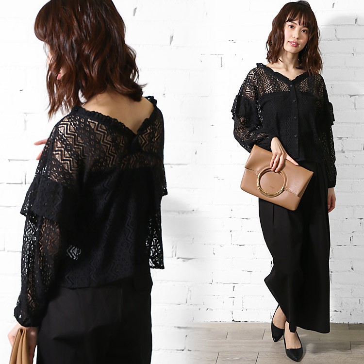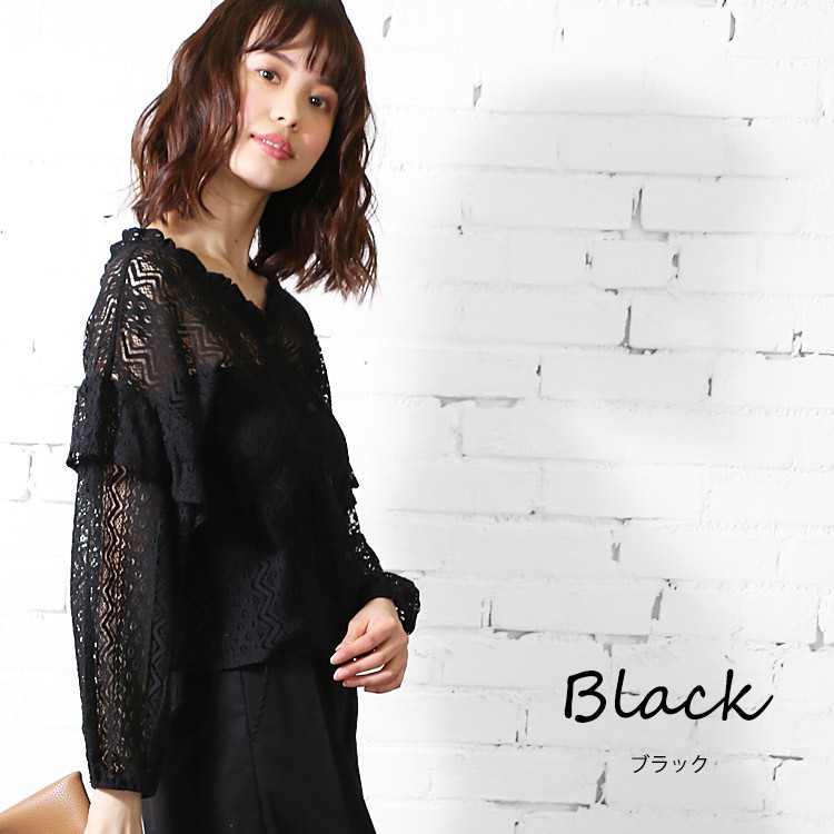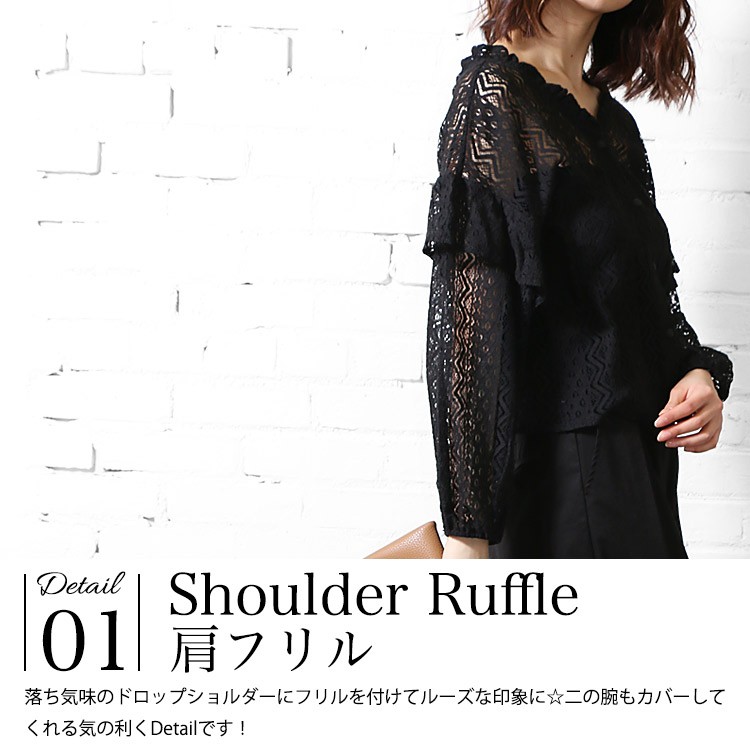 商品名:総レースショルダーフリルブラウス