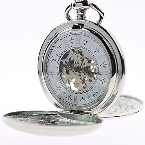 -. Feature : Mechanical Hand-Winding Pocket Watch, Analog Display. / Chain Length 14.17 in approx.,Case diameter: 1.77 in approx. Case thickness: 0.51 in approx. / Retro Silver Case, White Dial, Black Hands, Silver Chain and Roman Numerals. / Alloy Metal Case & Chain, With Free Chain & Gift Box / 100% Brand New and High Quality! Double Hunter.
