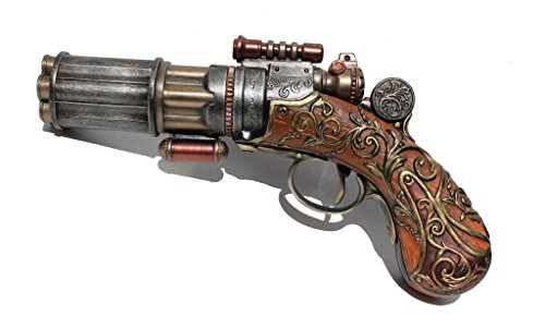 Steampunk 6 Barrel Dummy Pistol Statue 8.5 Inch Long