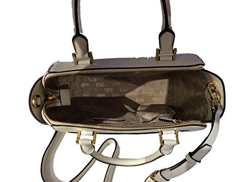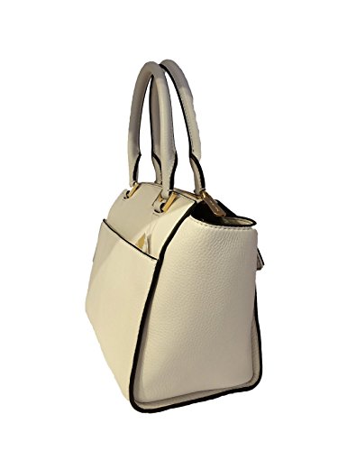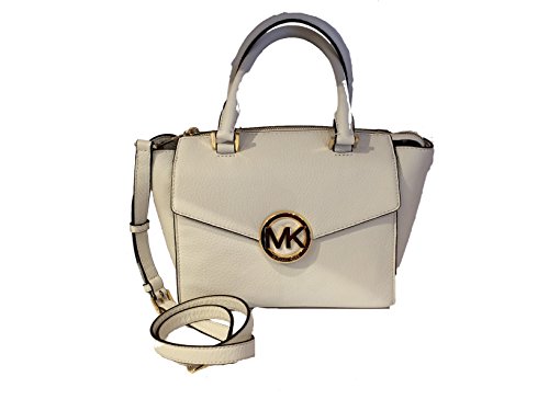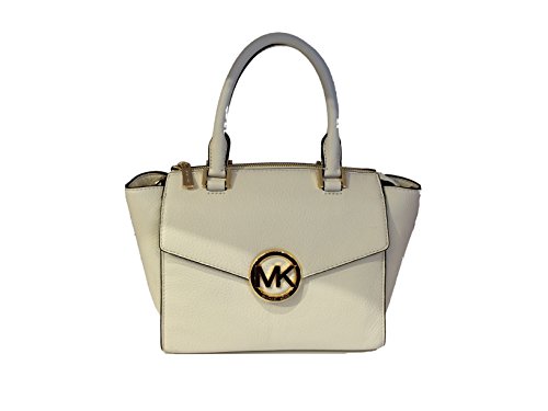 -. Brand : -. Color : Vanilla -. Department : womens -. EAN : 0888235791074 -. Feature : Classic off-white pebbled leather with polished gone tone hardware / Lined interior with zippered pocket and (2) open slip pockets; Front flap pocket / Three quarter zippered top closure with side gussets and open slip pocket on the back with magnetic closure / Dual rolled leather handles with a 4.5" drop, or use the removable and adjustable shoulder & cross-body strap / Measures approximately 9.5" (L) x 7" (H) x 4.5" (W) -. Model : 35H4GHUS2L -. ProductGroup : Shoes -. ProductTypeName : HANDBAG -. Size : Medium -. Title : Hudson Medium Vanilla Leather Satchel -. UPC : 888235791074