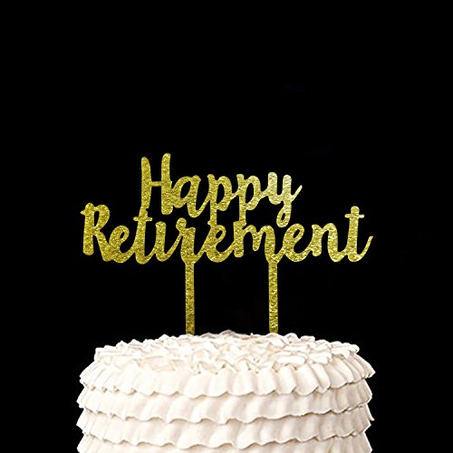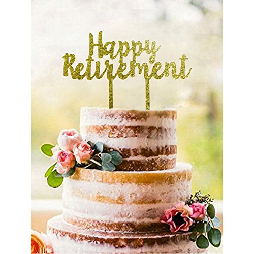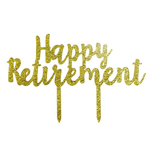 Gold HAPPY RETIREMENT Acrylic Cake Topper - Retirement Party Supplies Favors, Gifts and Decorations