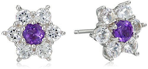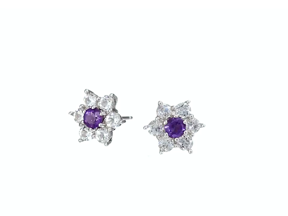 Sterling Silver Amethyst and Created White Sapphire Flower Stud Earrings