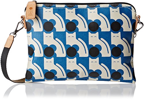 Matte laminated travel pouch in the 'poppy cat' print with leather trims and contrast colored zip closure. Inside details include linear stem jacquard lining, small leather logo card holder pocket, small patch pocket for a passport and mobile slip pocket. Silver colored hardware. Includes a detachable long strap in double sided webbing that allows the bag to be worn as a shoulder bag or across the body (length 112cm) or detached and used as a pouch or clutch.