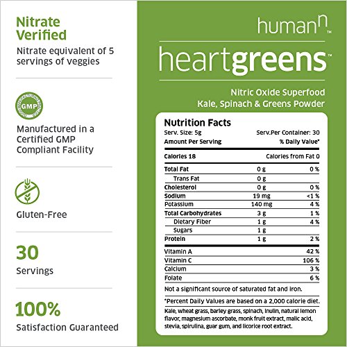GREEN SUPERFOOD: With ingredients like Kale, Spinach, Spirulina, Barley Grass, and Wheat Grass, Heart Greens makes it quick and easy to get your daily source of nitrate from greens. Perfect for Green superfood smoothies.