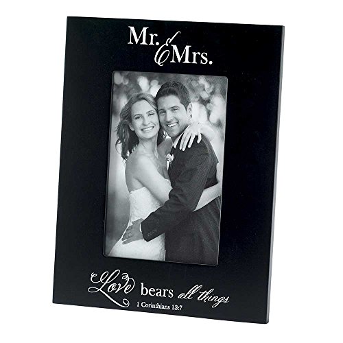 Mr. and Mrs. Love Bears All Things 1 Corinthians 13:7 Wood 9 x 7 Photo Frame Plaque