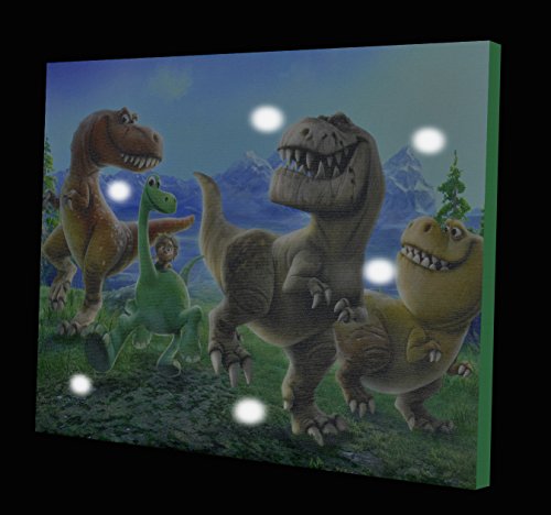 -. Binding : Toy -. Brand : Disney -. EAN : 0784857635515 -. Feature : Colorful and bright graphics from Pixar's Good Dinosaur / LED lights inside artwork will illuminate any child's room while adding to the decor / Canvas fabrication is easy to mount with no assembly required / 2 AA batteries required - not included / Dimensions: 15.75"L x 11.5"W x .5"H -. Label : Idea Nuova - LA -. Manufacturer : Idea Nuova - LA -. Model : NK319014 -. MPN : NK319014 -. PackageQuantity : 1 -. PartNumber : NK319014 -. ProductGroup : Toy -. ProductTypeName : TOYS_AND_GAMES -. Publisher : Idea Nuova - LA -. Studio : Idea Nuova - LA -. Title : Disney Good Dinosaur Canvas LED Wall Art -. UPC : 784857635515 -. Warranty : No Warranty